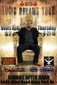 The lunatic mad man from michigan himself Skitzo is kicking off his Lucid Dreams tour . This man is a legend in the underground himself with features with originals such as matsamind of N.A.T.A.S and many more detroit underground pioneers . Skitzo has already brought you the kick off of the tour at the Michigan Cannabis Cup brought to you by High Times .He will continue to spread Lucid Dreams across the east coast with with guests such as Zug Izland & Sewerside, Doobie and the legendary Obie Trice. Roxxxtv will be catching up with Skitzo and enjoying some Lucid Dreams ourselves at his second stop of the tour Simons After Dark in Allen Park MI. on June 21st . There is a banger of a guest line up with names like Dagger , Ice beezy , The Mad Butcher , K.D.T (killas dont talk) and eastside and underground rap phenom Flagrant Musick. Roxxxtv will be doing an interview with Skitzo and other artists , also filming live footage so come out say hi and give a ROXXXSTAR shout out for Roxxxtv.