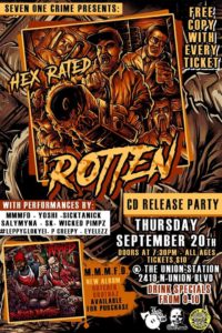 If you haven’t heard the homie Hex Rated from Lyrikal Snuff Productions is dropping a new CD Called Rotten and it is set to comes out September 20,2018 and every ticket will get you a free copy of the CD which sounds made dope. Much love to Hex Rated and the LSP crew.