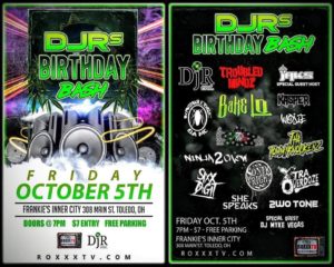 DJR BIRTHDAY BASH! It’s going down in Toledo, Ohio! Friday, October 5h, one of the most notorious DJs in the Midwest is having a party! Still not convinced? The bash is hosted by RoxxxTV! Which promises one thing. A party unlike any other.