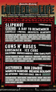 This year, Dropkick Murphys, Rob Zombie, Marilyn Manson, Three Days Grace, among other big names will be performing. But, there’s a legendary band that will more than likely steal the show. Ladies and gentleman Guns N Roses will be performing live at Louder Than Life 2019! And when we heard this in the office, it became the topic of conversation. To be honest, I was ranting about how Dropkick Murphys would be playing at this event. And, that is my personal highlight and reason for going.