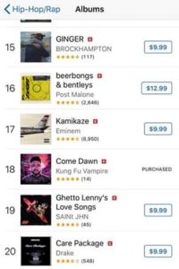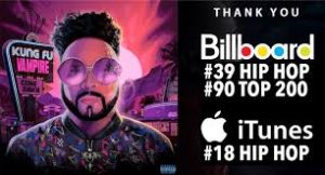 This album debuted at #18 on I-Tunes charts right under Eminem’s Kamikaze. Not only that, but it most recently hit Billboard at # 39 for Hip Hop charts AND #90 for the top 200. It’s definitely worth checking out and you can find it on Kung Fu Vampire’s website at www.kungfuvampire.com or anywhere else you can buy music.