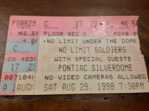 #1 “No Limit Under The Dome”-NO LIMIT SOLDIERS with special guests (which included legendary SCARFACE) at the Pontiac Silverdome in Pontiac Michigan. Saturday August 29th, 1998 at 7:30pm.