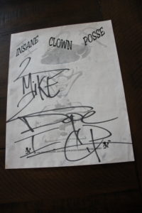 So after five hours, I was able to get into the Wyatt Earp Records finally and meet Violent J and 2 Dope. They were over the top, personable, and everything I hoped that they would have been. They already had a fan for life that day, but when artist show gratitude and love to the fans, it takes it to another level. Violent J jumped over the table and put me in a headlock of some sort, getting paint all over my Riddle Box shirt, which I kept for years but my mom tossed out (I still think about that shirt). I got autographs from both of them and then I was moving on. It was, up until that point, one of my best memories of the music and the culture.