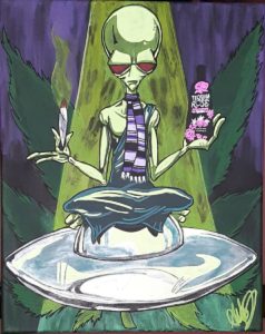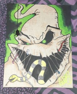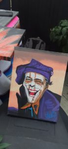I’ve been drawing for a very long time, since I was a kid. One of my earliest influences was my best friend, Nick Schenk. He used to draw in class and I always tried to mimic him. From there I went on to challenge myself to draw other things, mainly cartoon characters. I’ve always been artistic, so it was only natural to dabble in everything. From crafts to wood signs to make-up for Halloween. But the moment I decided I wanted to paint the world was about 2016 when I was sitting at Romanowski park here in S.W. I used to go there to sit and get some peace and quiet. So, I got up, went to the Art store, got some supplies and went and did my first painting. Been painting on canvas ever since.