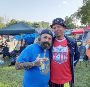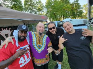 After the shower from hell (not really but it sounds cooler when you say it like that) I got moving and fired up the kitchen. I decided to crank out some French toast, sausage, eggs, and a little OJ. After a brief round of strategy and syrup, the PJB road crew was ready for another day of battling the heat, slanging that merch like some stones, and getting it the fuck in. I was multi-tasking a few different things between the raffle, the performance, pictures and documentation for ROX-TV, and much more. I also was gathering material for the new book I’ve been working on with Rudy “Rude Boy” Hill, which I’m currently in the process of finishing. (Author’s Note: We hope to have the product finished by the middle of September, fingers crossed on that….and be ready for the holiday season. More information will come on that release so keep checking back for updates. It’s going to be a banger, so be prepared)