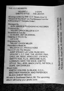 Where do we take it from here? Well, once I had my own vision for stamping Juggalo History into the rock, I decided to re-examine some of my favorite aspects of the early days, the music, the artists, and go from there. I grew up in the 810 (Genesee County, Michigan) and still live there today. Most Juggalos who know their history, will also be able to tell you about two groups with Psychopathic History from Flint Town.
