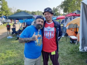 DJ Chunk knew about my writings for ROX-TV and I told him that the show in Denver was amazing. We made small talk mostly and never missing a moment to document the history, asked if Chunk would be down for a quick picture. DJ Chunk was really cool about it and said sure. I told him we couldn’t wait for the performance and when another cart arrived, he was off into the depths of the Juggalo Universe camped out at the site. Eventually our ride showed up and the driver offered me and Gary a few Faygo’s which was a nice gesture. We blew through the park and eventually made our way through the humanity, to where PJB was posted up. It was going to be an epic party and we all knew it.