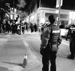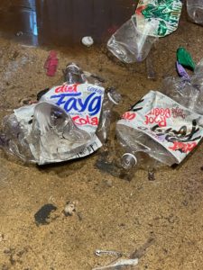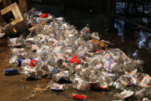 Eventually the security crew was able to get everyone out the door. The hard part was just starting for them. They had the job of sopping up all that fucking pop and I didn’t envy them. They were using large squeegee type equipment and pushing the pop into garbage cans, that were tipped over sideways on the ground. At that rate it was going to take a very long time to get it cleaned up, but no one seemed too set back over it.