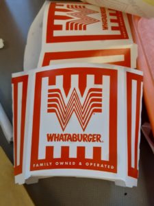 Most of the discomfort from the precious night’s party had worn off and I was happy for that. The next thing that needed to be done was to eat something. An empty stomach can become a source of trouble, so food was needed to calm things down. Plus, I needed the energy. Nothing sounded good at the moment, but a burger and salty fries washed down with shitty fountain pop sounded like a hot ticket. I had sworn off McDonalds days earlier, so we settled on this joint called “Whataburger”. I must admit, the name wasn’t all that creative, but the building was splashed with Halloween Orange and that spoke to me on some higher level. Whataburger it was and I hoped it didn’t suck.