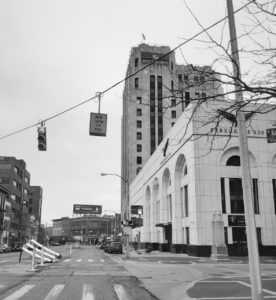 Skitzo took me on a tour of his city and filled me in on the happenings and places of interest. I always like getting a feel for a city when I hit the bricks and I had one of Kalamazoo’s sons giving me the run down. We hit down town for a spell before hitting the hottest street in the city, none other than Hays Park Avenue. Skitzo told me that in the summer it was one of the jump off spots for action and could get pretty wild at times. We dipped through the neighborhood and Skitzo showed me around. The wind started to pick up and it felt good to get out of the cold, once we rolled up to the studio. YOUNG KINGS Studio was on the corner or Reed and S. Burdick Street.