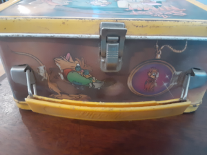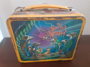 So, tonight’s article is for the lunch box heads from the 1980’s as well as collectors of the pieces. The lunch boxes were a great representation of American life and the blending of lunch and entertainment. They were basically commercials that held lunch. Usually very colorful, exciting images, and all that eye catching madness that drove kids to beg their parents for the latest and greatest whatever. I would also like to take a moment and say that when the “plastic” lunch boxes came along, it was ruined forever. Less durable, less fun…they fucking sucked and I curse the day they switched from metal. You could fend off an attacker with a metal lunch box, sadly I cannot say the same for the plastic shit boxes. I don’t support or collect the plastic versions and that is all. So before I get lost in the weeds, I will bring this shit back around. Today we will be examining one of my favorite lunch boxes from my collection, the fabulous “The Secret of NIMH” lunch box. (If you’ve watched Archive81 on Netflix you will see several references to The Secret of NIMH, and I find that odd and rather interesting). Lets get to it…