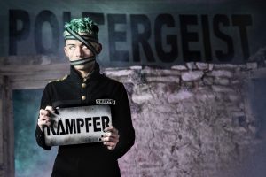 “Poltergeist has that strange power of attraction that hold these personlaites with their mysterious aura. As soon as Ari Girard (aka Poltergeist) appears, something happens, he catches the light and strikes the spirits. The Kampfer LP is a ghost story where Poltergeist invites Joy Division, New Order, Talking Heads, The Cure, Can, Kraftwerk, Nine Inch Nails or Jeff Mills for its first album. At the Poltergeist banquet, the crows of cold wave and the barbarians of krautrock, the metallers of indus rock and the freaks of techno meet”