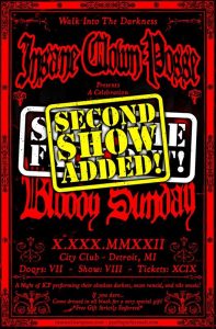 You could have been there, witnessing Underground Music history happening, with a lifetime to share the experience. Or you could sit on your ass and get high or drunk for an evening talking about shit you wanted to do but never will, with a lifetime to remember the night you almost did something. I guess the choice is yours my friend or maybe not since this show has already sold out. The Juggalos know history when they see it, hence a sold-out night. Are you a lucky ticket holder? If so, congratulations. The venue is the City Club in Detroit. The show starts at 8pm. The statement below is an exceprt from ICP’s FB page. I would read the words carefully. The announcement of the “Second Show Added” should rattle your cages. The first one sold out, how long before the second gig realizes the same fate? I wouldn’t chance it. Get a ticket, go to the show, have the night of your life.
