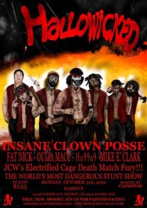 From what I’ve gathered it’s going to be a glorious day for the Juggalo Culture and the continuation of their underground dominance. I’m sure everyone who follows ROX-TV knows what I think about Harpos. I’m currently working on a project with the owner, Ruzvelt. The piece will be highlighting “The King of Clubs“…Ruzvelt and will be another stone in the wall that is the Detroit Music Scene. More details coming in the following months so stay up on it. Anyways…as in previous years, painted faces will be getting a surprise. I’ve always loved that. A collector’s item specific to one show in time is always a jolt of electricity to the heart of those that retain mementos forever. I’ve saved everything that I could get my hands on over the last three decades and today, that collection has blossomed into a wonderful flower. The price is $125 dollars and the event will be hosted by the homie Clownvis. I will be there and will report back my findings to the unlucky souls who missed the greatest Halloween show on earth! HALLOWICKED.