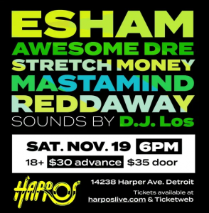 This show is happening a little later in November but deserves to be talked about now. ESHAM and Reel Life Productions have announced a murderous show going down on November 19th and will be happening at one of the most iconic spots in Detroit…you guessed it, none other than Harpos. Perhaps you are starting to see a theme here. A dope show in Michigan kicking off at Harpos. If you recognized the pattern, then you already know. I’ve seen Esham at Harpos, many years ago. Hell, it might be pushing close to two decades ago at this point. I’ve also seen Esham at other places in Detroit, but Harpos is my favorite memory of those times.