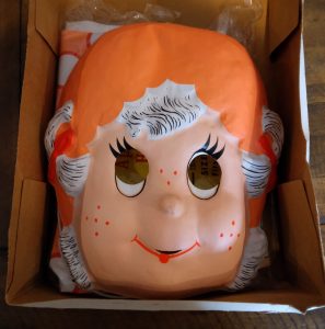 These costumes are pretty basic and there isn’t much else to really report on. I think the mask is kind of creepy in a Stranger Things x Horror Movie blending kind of way. This is the kind of mask the crazed killer in one of those “I’m all alone in a rainstorm” type of movies would wear. I suppose from a collectability standpoint, it is hard to find but not totally impossible to track down either, at least at the moment. Ebay currently features one “Apricot” costume in the box, and the price is what I would consider ok…clocking in at $45.00. The box is a little rough with two tears in the front of the package, but with limited options to choose from, beggars can’t be choosers. If you are a fan of Apricot or the cartoon specials, then having one available on Ebay at all is a win. For me, costumes that generally stay around the $12 to $50 dollar price are fair, depending on what is offered. Some command hundreds of dollars, and I guess it comes down to the collector’s wish to own something that they really want.