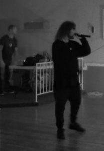 I arrived early, like I always do, and it was time to check out the scene. There were different people bustling around, helping set up the place…food was being brought in, sound checks, and all that goes with it. I found a seat near the edge of the room (always my favorite place to be) and took a load off. One of the first familiar faces I seen was Bobby Doe, moving across the room. I hadn’t seen him in person since the Ouija Macc’s “Death by Denver” show in Colorado. We greeted each other before he kept moving. Everything looked like it was coming together nicely from my corner seat. There was nothing left to do but wait for the gig to jump off.