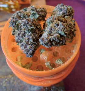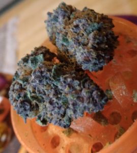 My initial reaction to the presentation was very positive. The buds were nicely trimmed and dried to perfection. The purple tones really come through strong and makes the bud look appealing and unique. It’s the kind of smoke you whip out at a party to impress strangers with. As far as aroma was concerned, the flower scored a very high score with its fragrance as well. To me (and we are all different), as I took numerous whiffs of the flower, was able to smell what seemed like a distinct tropical punch almost type of smell. It might not be a perfect description but at the moment, it’s all I can come up with. Maybe if you could imagine a cherry drink box or pouch, with a dab of Hawaiian Punch to go along…in my mind, that’s what I’m coming up with. I could be crazy from years of partying but that’s the best I can do.