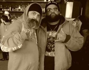 So once I got my bearings and some crucial pictures, I found the edge of the room and posted up. It’s what I do. I can usually be found on the border of just about anything. That’s where I live. Wherever the boundary lines are, you can find me tap dancing over the threshold. Ouija Macc’s manager Kevin arrived and was busy making shit happen. We chopped it up for a few minutes but I tried to stay out of the way. I don’t like to bother the artists when I’m in their environment, if that makes sense. Word to the wise, if you want to see cool shit, you have to go to cool places. Buying a ticket and taking the ride guarantees you a chance anyway. Can’t know if you don’t go. From there, I seen Strife over by the Hexxx merch table. He was doing his thing and I said hello but that was about it. These guys all work hard and when they are, I try not to interupt that. Big Hexxx rolled in after that, with the fabulous Macey by his side. I can almost feel the California sun off these guys when I see them. They are pure West Coast and I dig that. I greeted Hexxx and gave him a gift from Detroit.