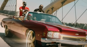 For the record, the images on the screen start coming very fast. Imagery that I love. Right out of the gate, we got four homeboys rolling in a tough looking Chevy. Within these 9 seconds, I can literally feel the California sun burning the top of my head. If I was high enough, I could probably smell the ocean too. I think I caught a zip from that Ini Kamoze track “Here comes the hotstepper” tossed in for good measure. The screen flickers and we see the perfect alchemy melding of present and future…holding court near the infamous 6th Street Bridge in Los Angeles.